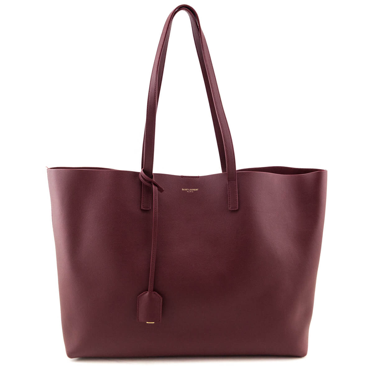Saint Laurent Carmine Calfskin Large Shopping Tote E/W crafted in supple deep red calfskin leather with a sleek east west silhouette that reflects the brand’s signature understated elegance. This authentic preloved tote is lightweight yet spacious, making it an ideal everyday companion. It features long leather shoulder straps and the iconic Cassandre charm for a subtle Saint Laurent signature. The interior is fully lined in leather and secured with a magnetic snap tab closure at the top, and includes a detachable zipped pouch perfect for organizing small essentials such as cards, keys or cosmetics. Finished with elegant gold tone hardware, this refined tote blends practicality with timeless style. This model is still available in Saint Laurent boutiques today, making this bag a modern classic for work, travel or everyday use.