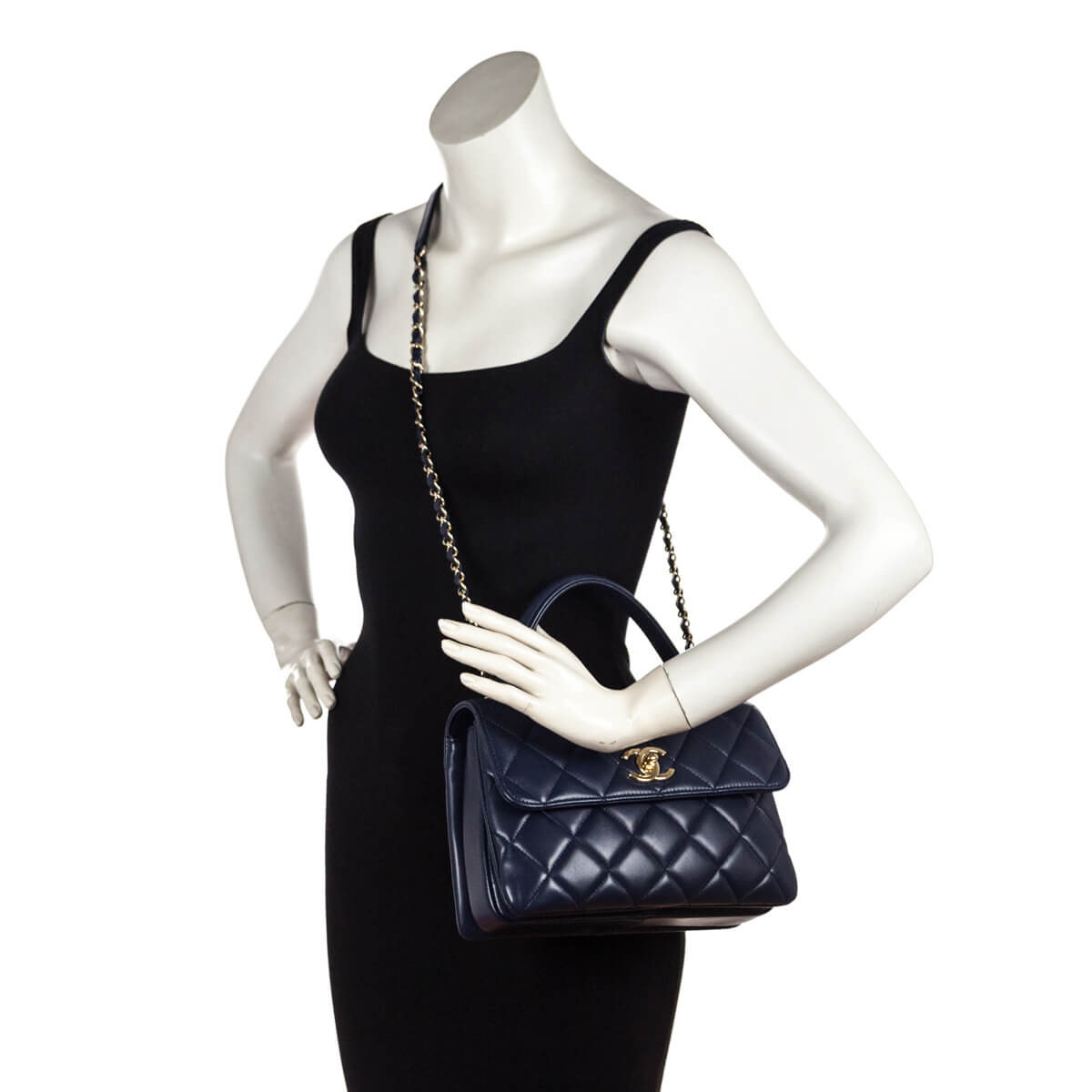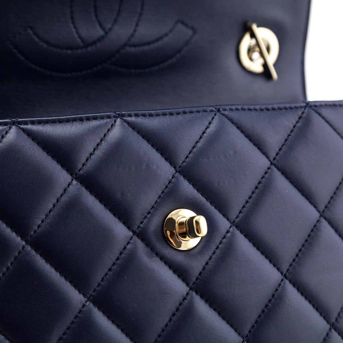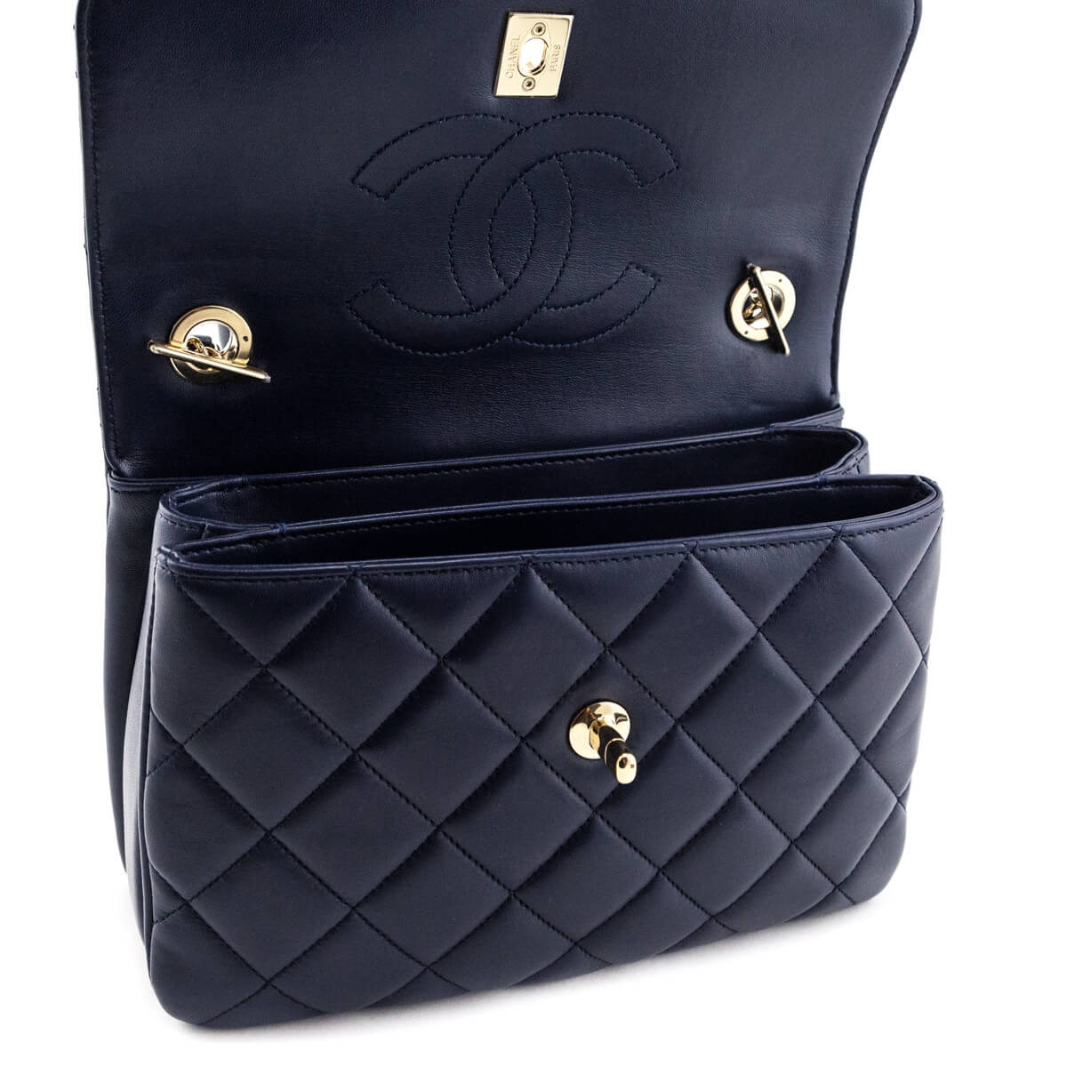 Chanel Navy Quilted Lambskin Small Trendy CC Top Handle Flap Bag