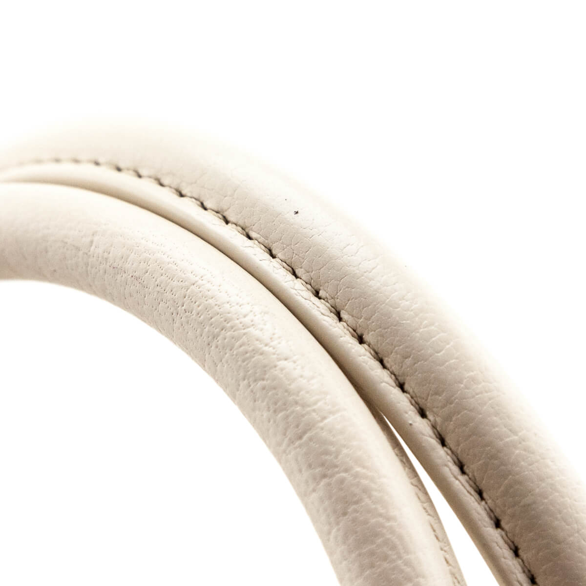 This Givenchy Ivory Sugar Goatskin Small Antigona Bag is a crisp neutral piece that's styling-ready with nearly everything in your luxury closet. Composed of a creamy white goatskin, this preloved Givenchy Antigona Bag complements its light frame with glossy silver-tone hardware. Exterior details include two leather panels preserving the base, a logo-adorned envelope protruding panel at the front wall, and dramatic winged sides extending beyond the structured silhouette. Tote this preloved Givenchy satchel in hand by the rolled leather top handles, or use the flat leather strap to wear on-shoulder. The beige canvas-lined interior features one open slip pocket, one elasticized slip pocket, one large zippered pocket, and a chunky top-zip closure securing the entrance. Amp up your luxury looks today with this crisp preloved Givenchy Ivory Sugar Goatskin Small Antigona Bag!