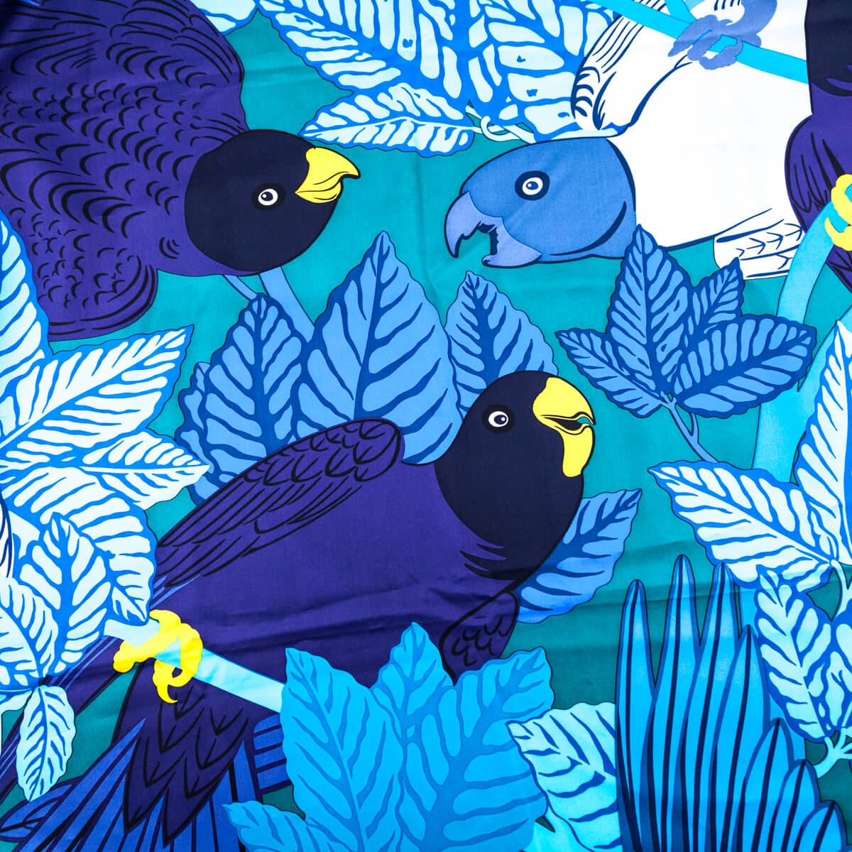 Immerse yourself in a tropical dream with this preloved Hermes Blue Les Perroquets Summer Weight Silk Scarf 140, crafted in airy light-weight silk. This extra-large carré features a vivid palette of blue and turquoise hues, with parrots playfully perched among lush foliage. Finished with hand-rolled edges, it drapes effortlessly with a lightweight touch, style it as a shawl, head wrap, beach pareo or belt for endless versatility.