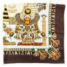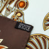 This stunning Hermes Brown Tresors du Nil Silk Scarf features an intricate Egyptian-inspired design in warm tones of brown, gold, ivory, and soft blue. Crafted in luxurious silk twill with signature hand-rolled edges, it showcases pharaonic motifs, lotus flowers, and symbolic details that highlight Hermes’ exceptional artistry. Beautifully preserved and richly detailed, this preloved scarf is a timeless collectible and a striking addition to any wardrobe.